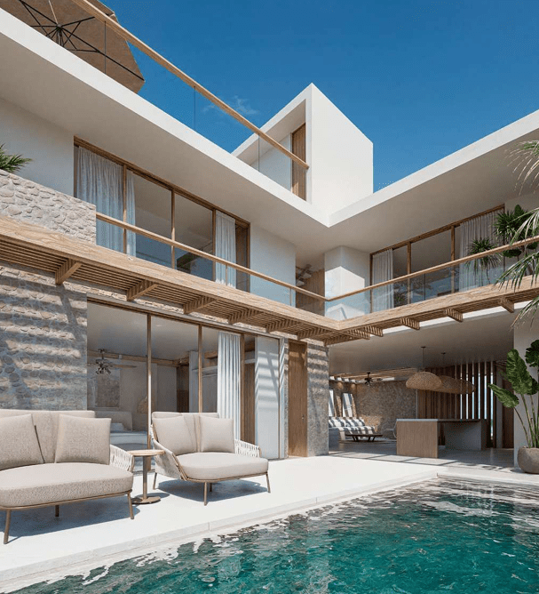 Nautical Signature: Exclusive villa type featuring a private pier for direct sea access.
