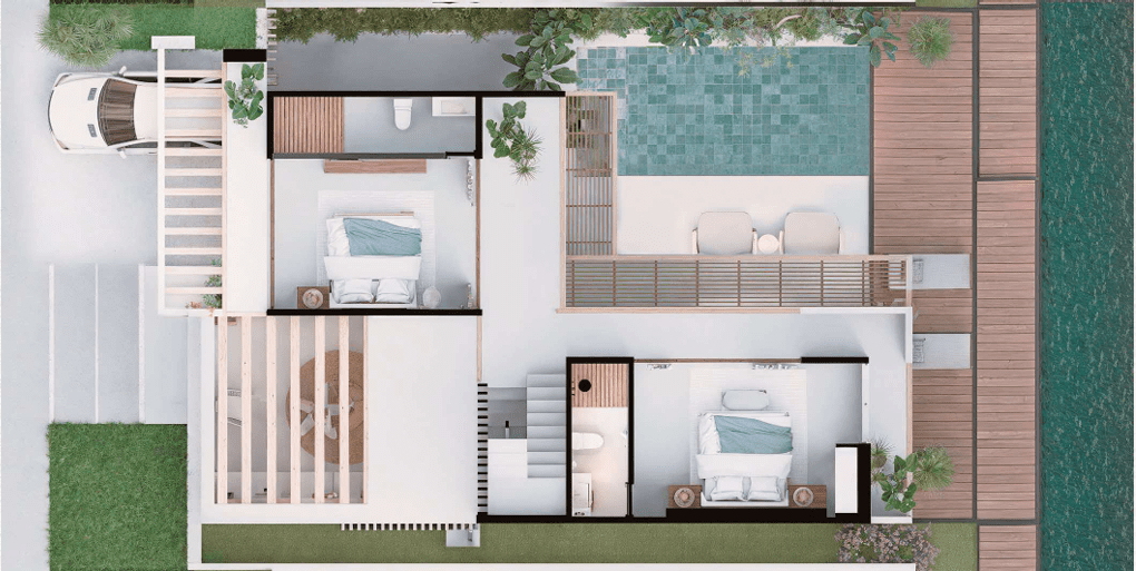 The unique character of Casa Tipo 4 lies in the unparalleled privilege of a private pier (muelle privado) directly at your villa, blurring the lines between your living room and the ocean. Spanning three levels, the villa features a spacious and modern design that seamlessly integrates natural elements with high-end luxury. Whether you are taking in the views from your rooftop terrace or stepping directly onto your boat for a journey through the crystalline waters of Barú, Casa Tipo 4 offers a lifestyle unmatched elsewhere in the Caribbean.